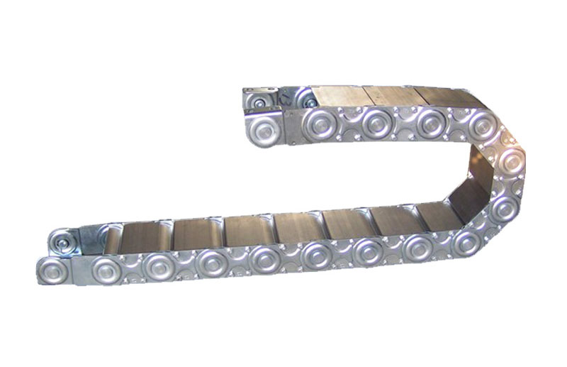 適用于所有的傳動方式,可隨意加長和縮短。TLG型鋼制拖鏈可承載數(shù)量多,重量大的電纜及油管,自由懸置長度大,支撐板可依顧客需要制作,使用于工作母機,移動機械等.此外,可通過改變銷軸獲得改變彎曲半徑.