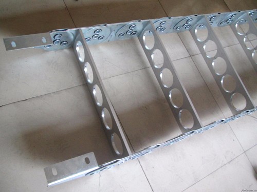 2.鋼鋁拖鏈拖鏈的支撐板寬度為150mm至800mm, 孔與孔之間的間隔量為10mm.鏈板的高度也就是支撐板的高度,是由電纜最大直徑?jīng)Q定的.